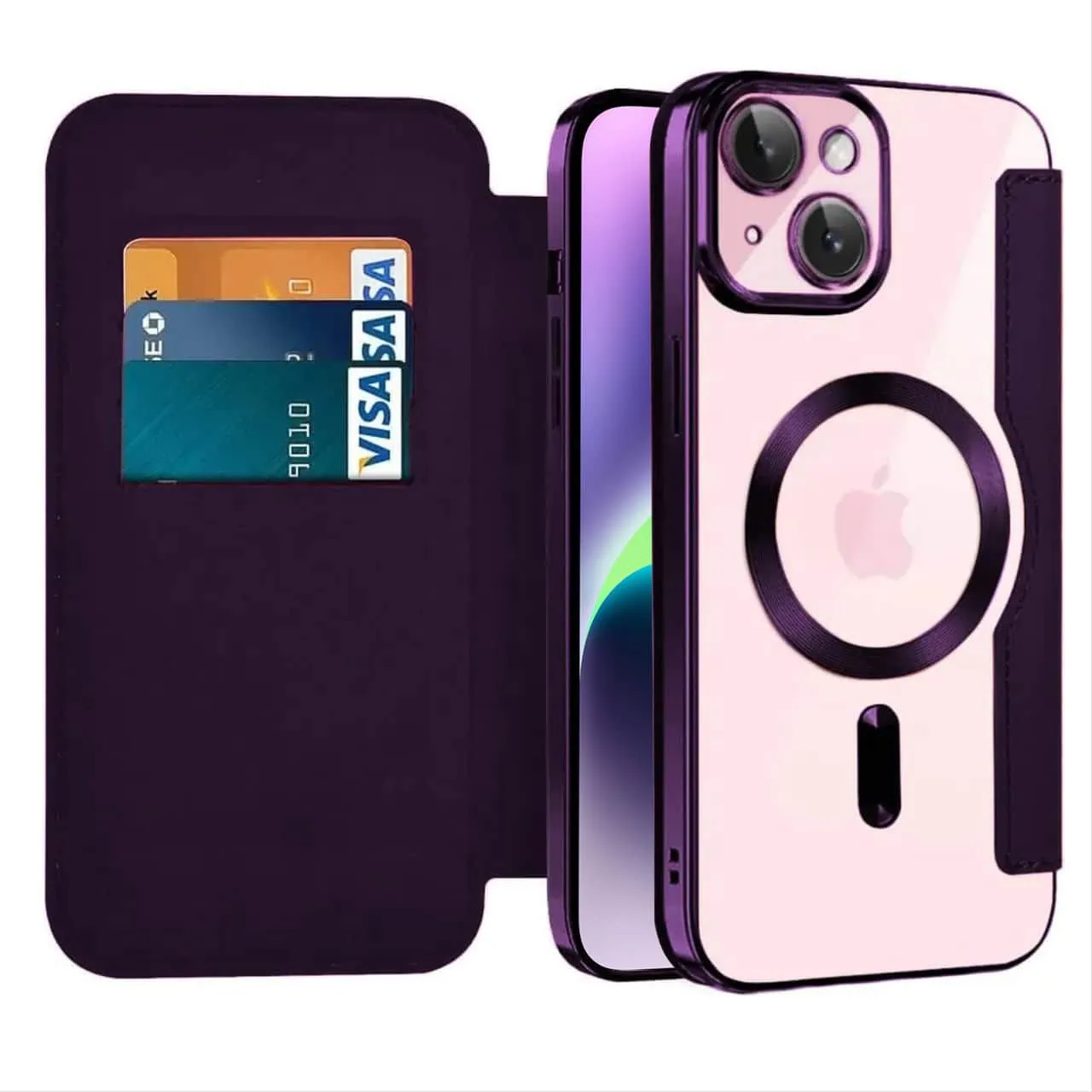 Etui do iPhone 14 typu książka Book Magsafe Lens Protect, z klapką, głęboka purpura