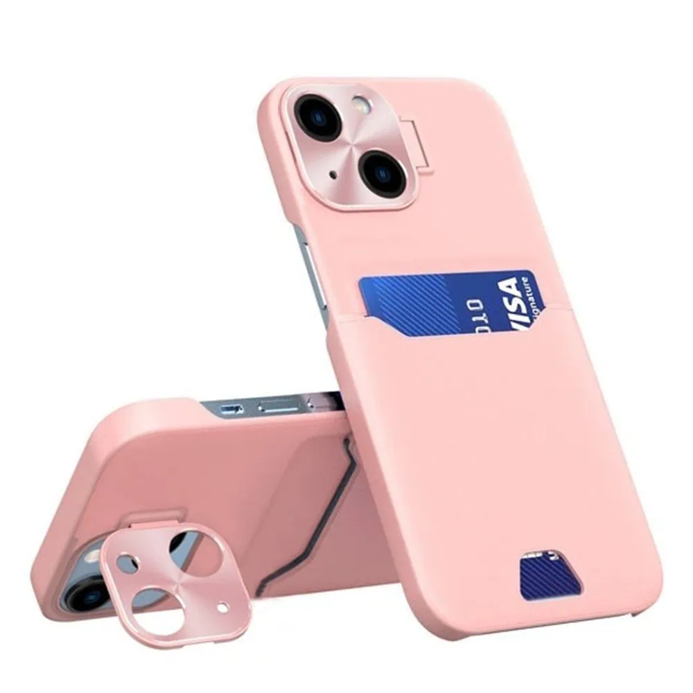 Etui do iPhone 14 Leather Stand z osłoną na aparat, miejscem na kartę i podstawką, różowe