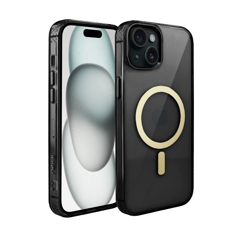 Etui do iPhone 15 Golden Elite, cienkie, ze złotym MagSafe, czarne