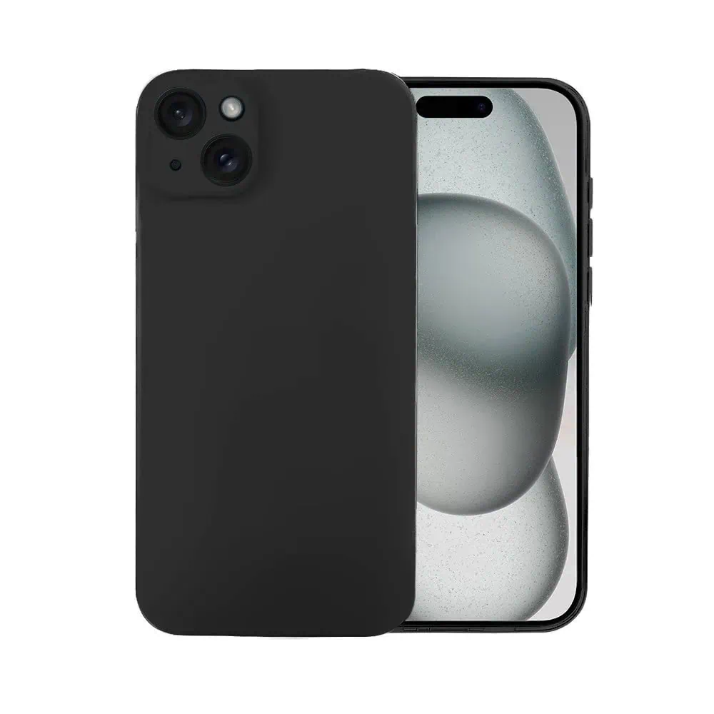Etui do iPhone 15 silikonowe z mikrofibrą soft touch z osłoną na aparat, czarne