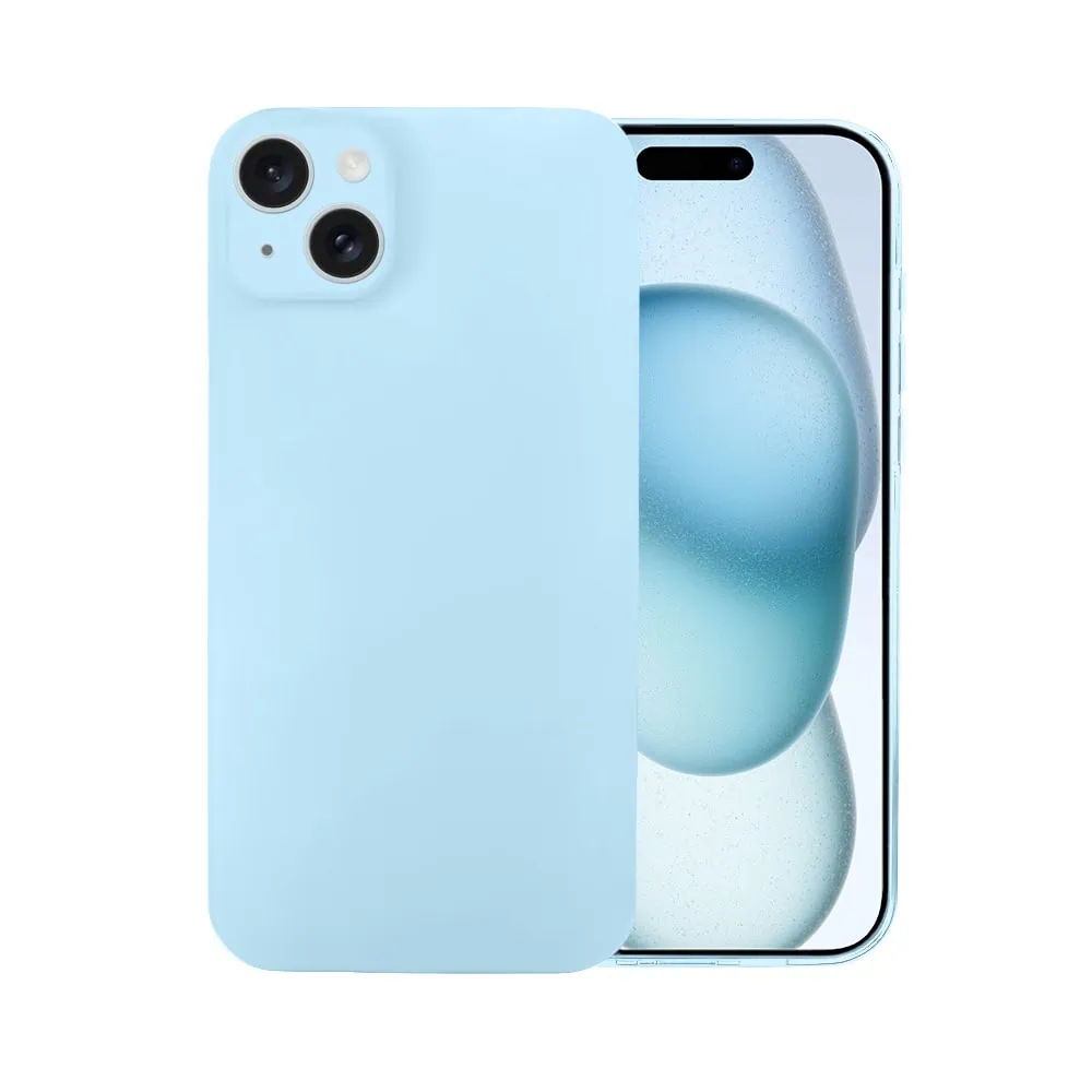 Etui do iPhone 15 silikonowe z mikrofibrą soft touch z osłoną na aparat, jasny niebieski