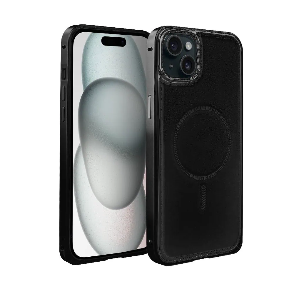 Etui do iPhone 15 Metal Solid Magsafe, pełny tył z metalową ramką i osłoną aparatu, czarne