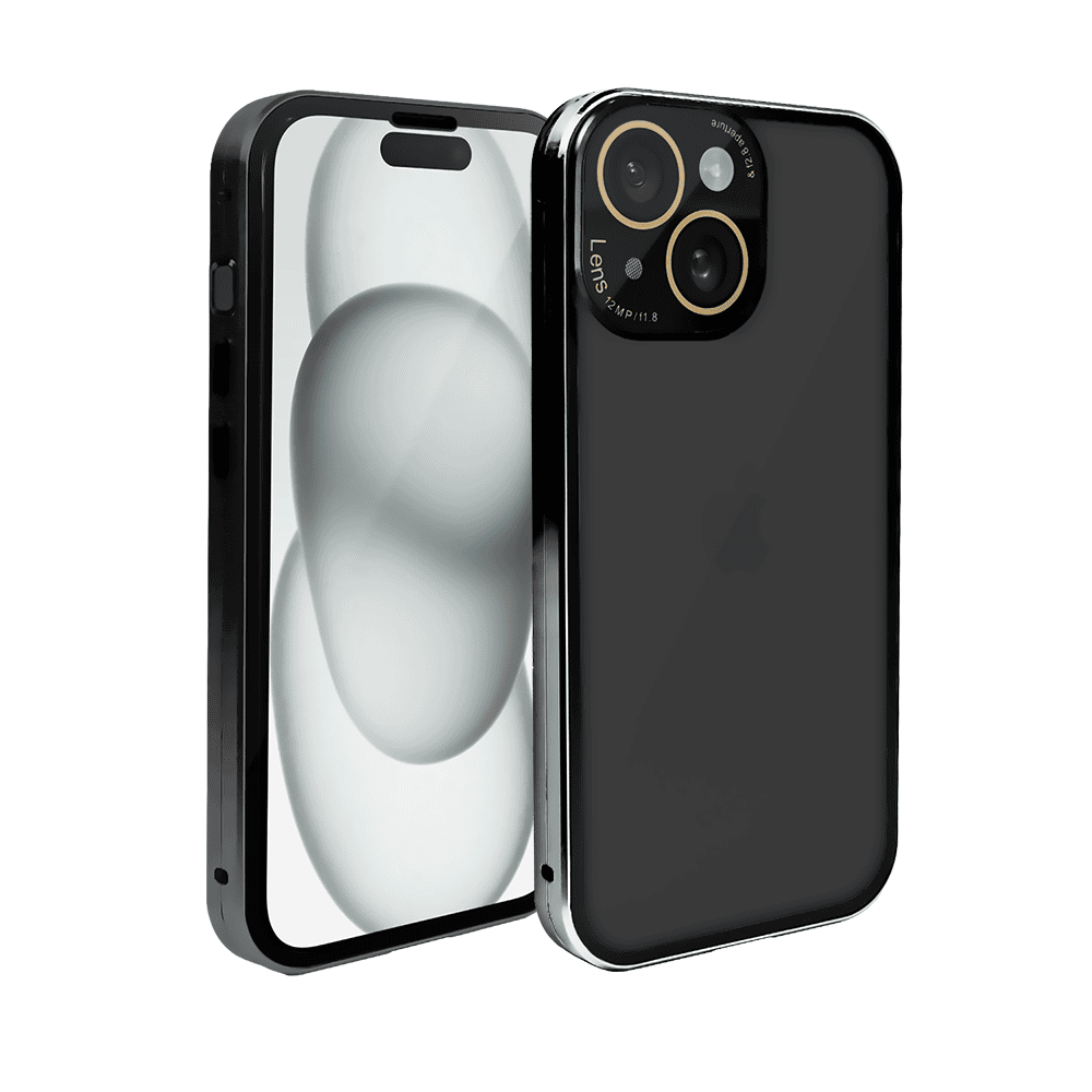 Obudowa do iPhone 15 podwójna szyba i aluminium 360° przód + tył magnetyczna, z osłoną aparatu, czarna