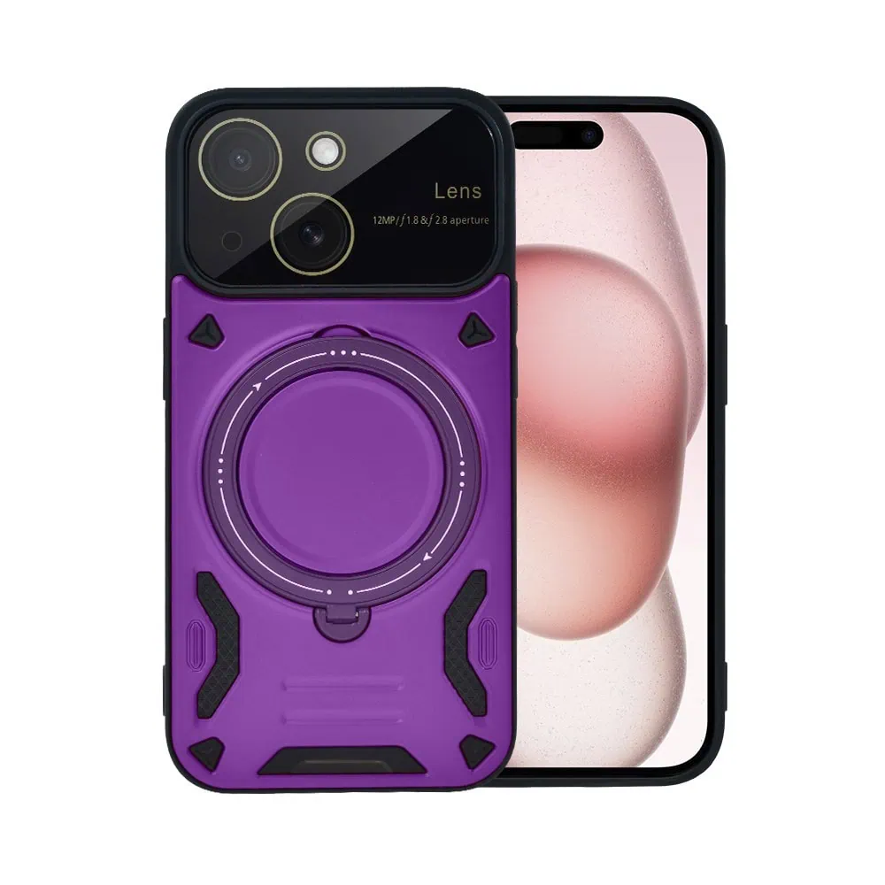 Etui do iPhone 15 Magsafe Camera Beam Stand pancerne, osłona kamery z podstawką, fioletowe