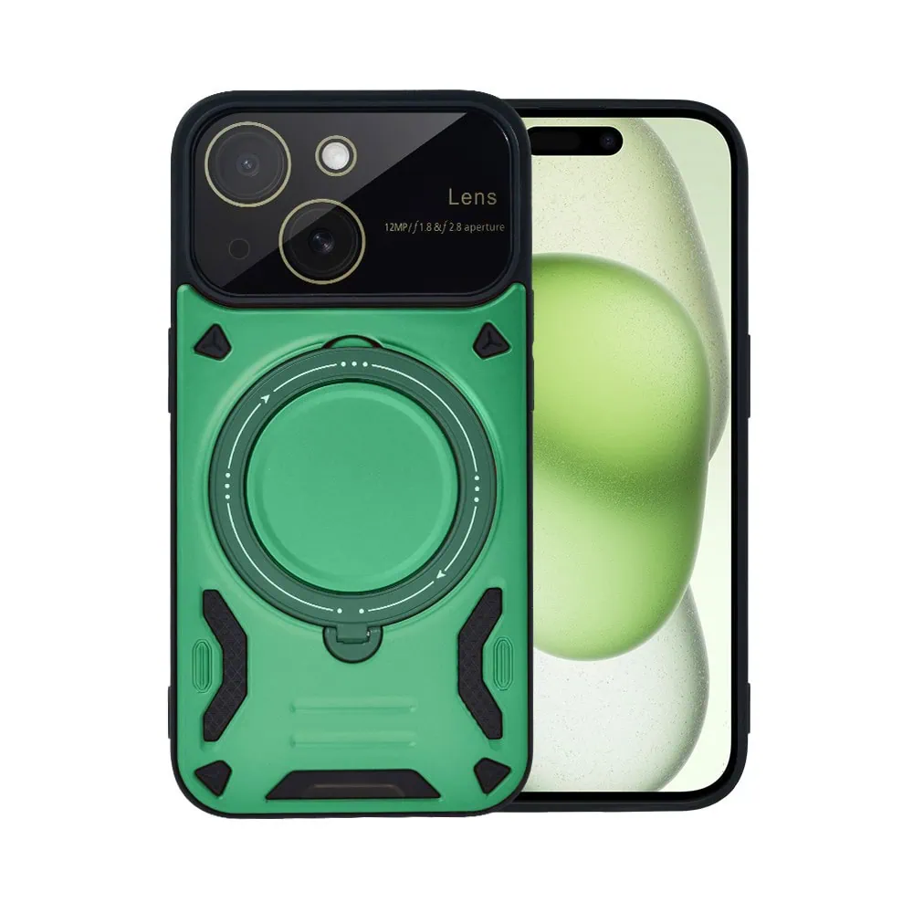 Etui do iPhone 15 Magsafe Camera Beam Stand pancerne, osłona kamery z podstawką, zielone