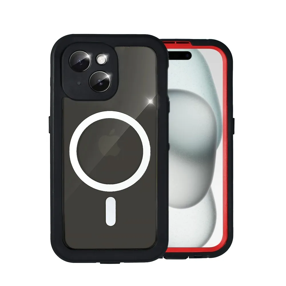 Etui do iPhone 15 TOTAL Protect z Magsafe, wodoodporne, metalowe, przeźroczyste, czarne