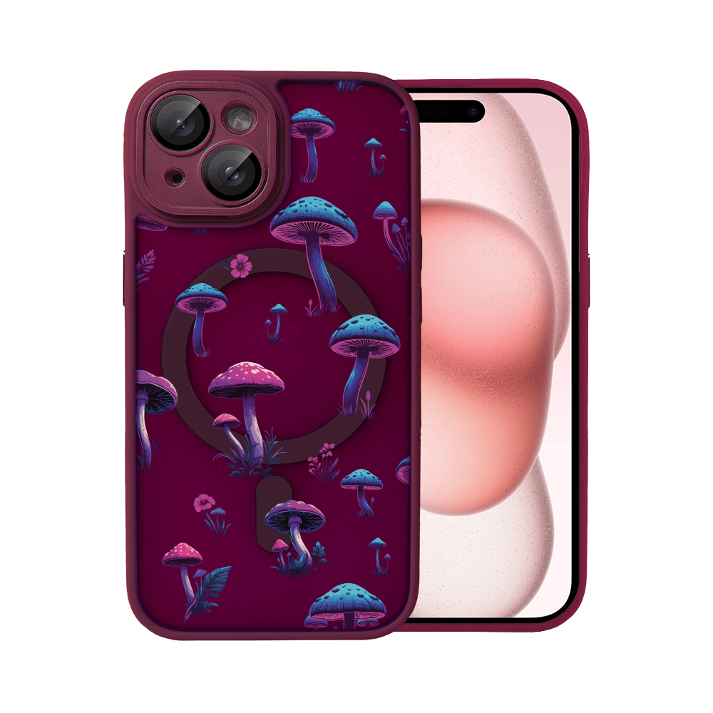 Etui do iPhone 15 Plus Color Flush z Magsafe, z osłoną aparatu, z nadrukiem magiczne grzybki, wiśniowe