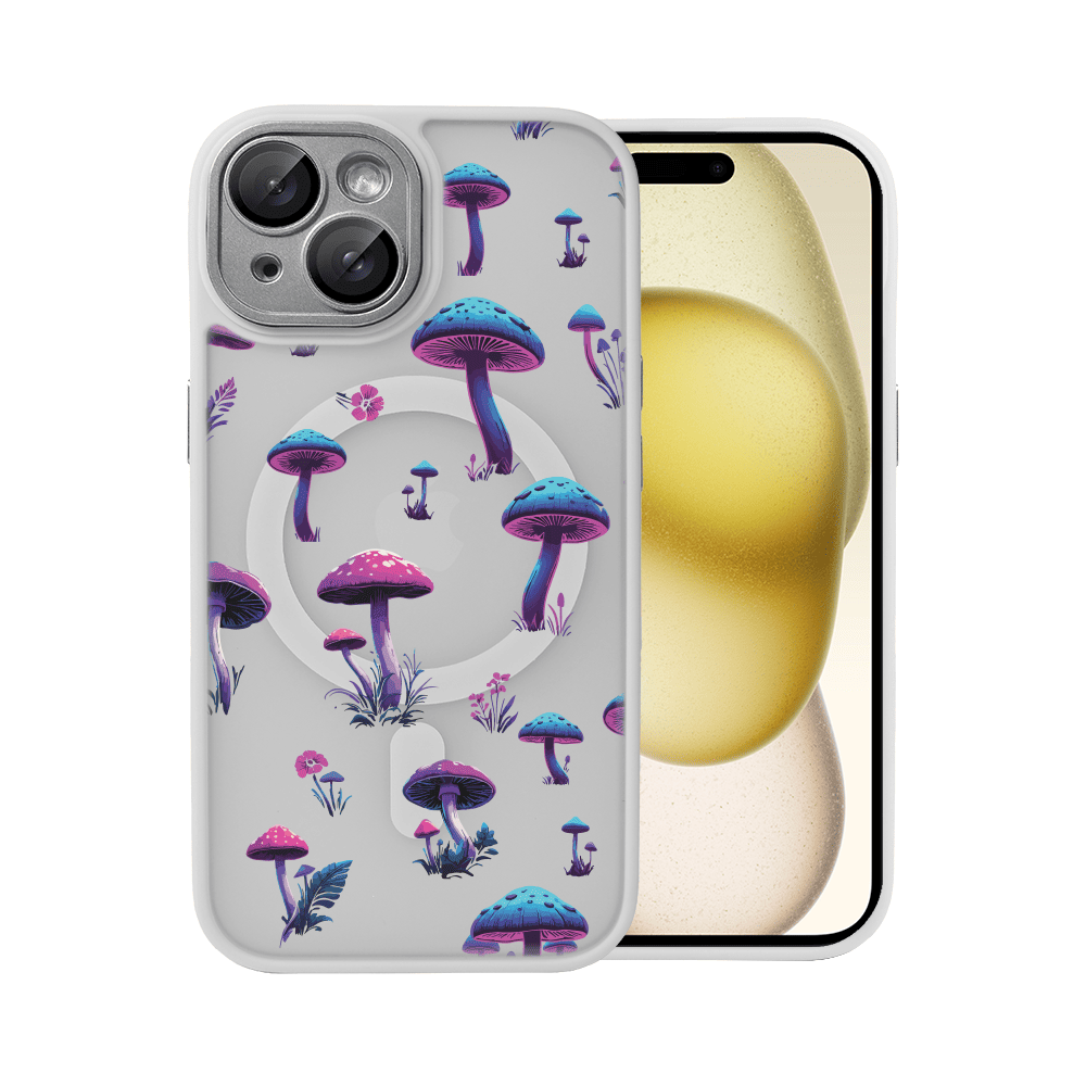 Etui do iPhone 15 Plus Color Flush z Magsafe, z osłoną aparatu, z nadrukiem magiczne grzybki, popielate