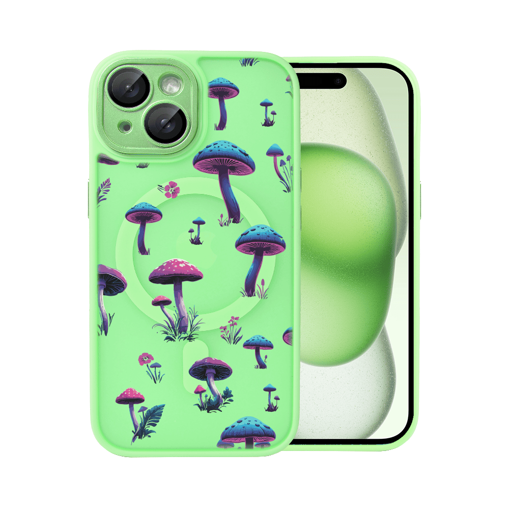 Etui do iPhone 15 Plus Color Flush z Magsafe, z osłoną aparatu, z nadrukiem magiczne grzybki, jasna zieleń