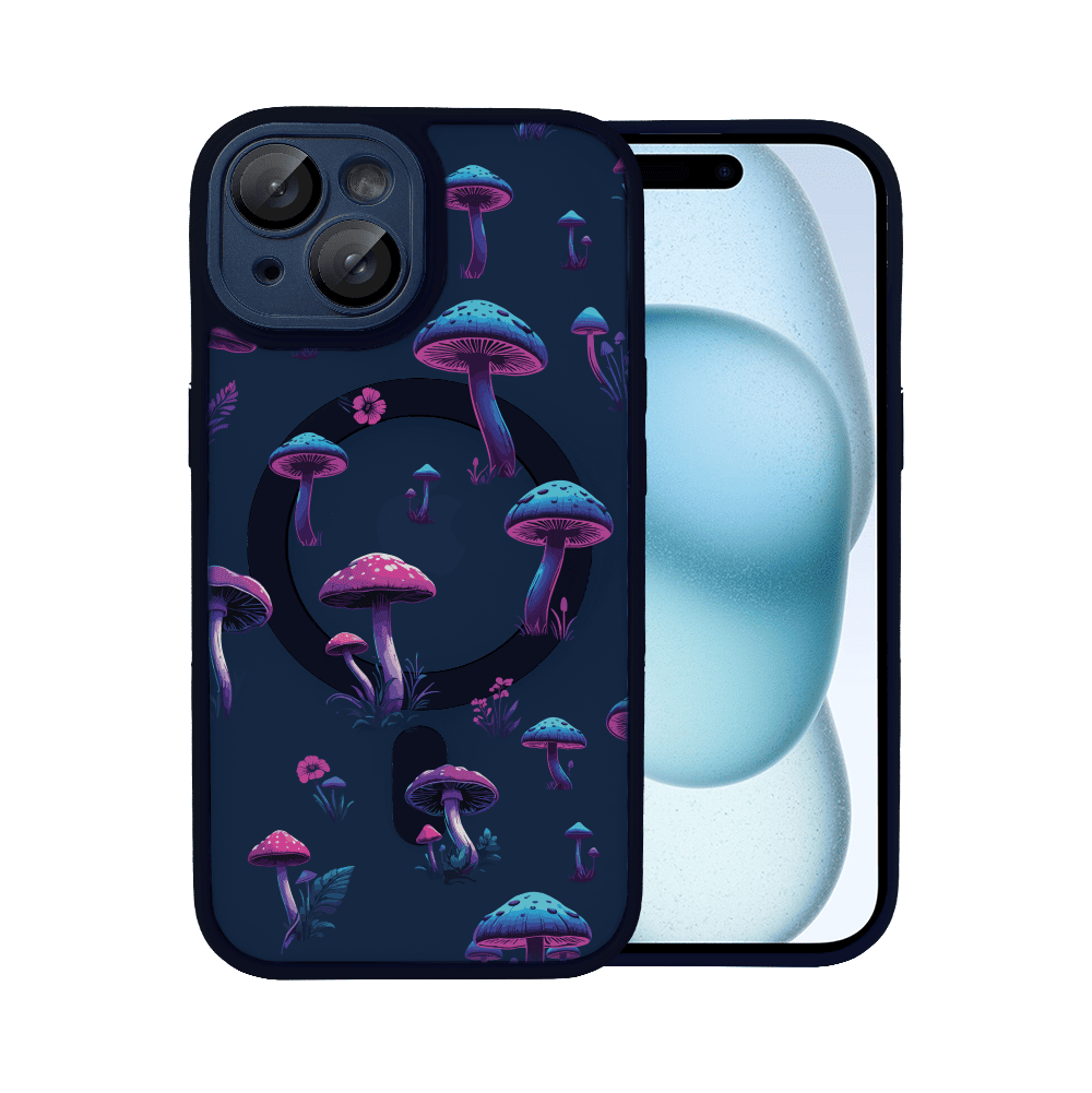 Etui do iPhone 15 Plus Color Flush z Magsafe, z osłoną aparatu, z nadrukiem magiczne grzybki, granatowe