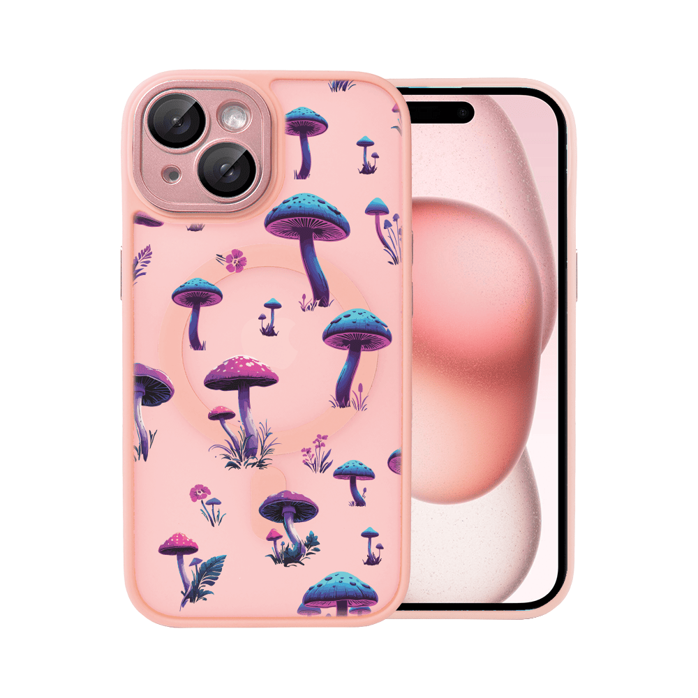 Etui do iPhone 15 Plus Color Flush z Magsafe, z osłoną aparatu, z nadrukiem magiczne grzybki, różowe