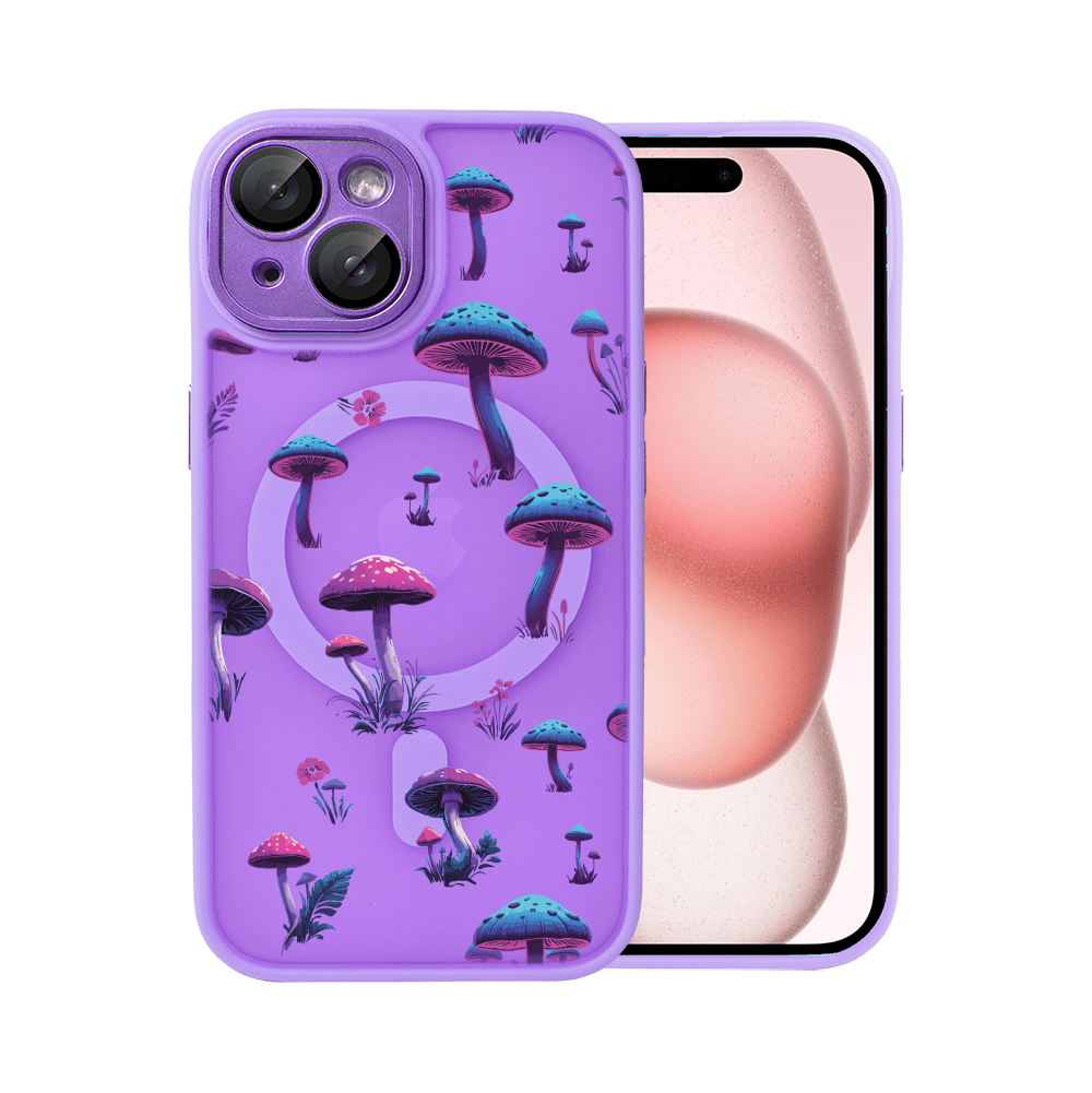 Etui do iPhone 15 Plus Color Flush z Magsafe, z osłoną aparatu, z nadrukiem magiczne grzybki, fioletowe