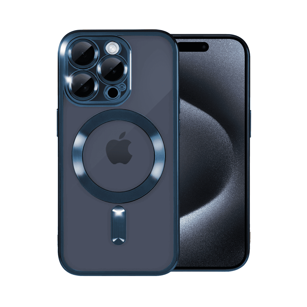 Etui do iPhone 15 Pro MagSafe Luxury Protect przeźroczyste, hybrydowa ochrona kamery, pacyficzny niebieski