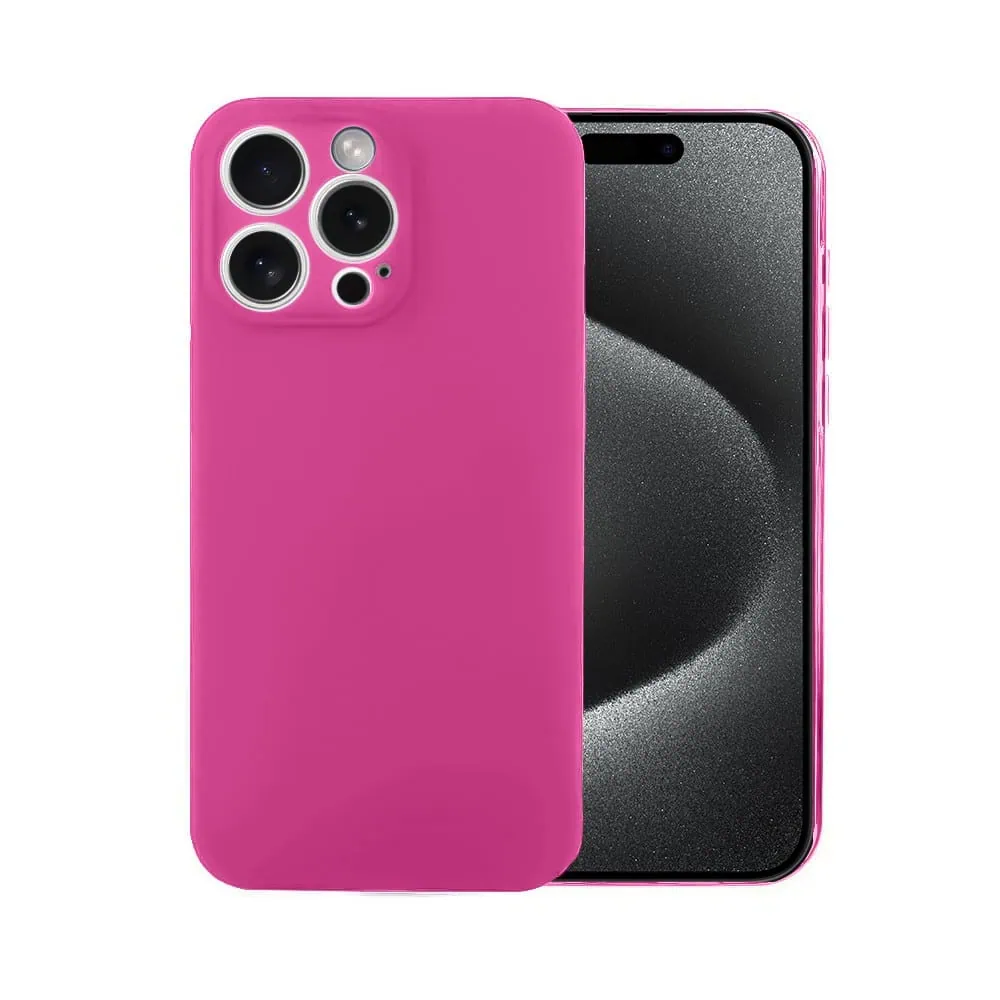 Etui do iPhone 15 Pro silikonowe z mikrofibrą soft touch z osłoną na aparat, malinowe