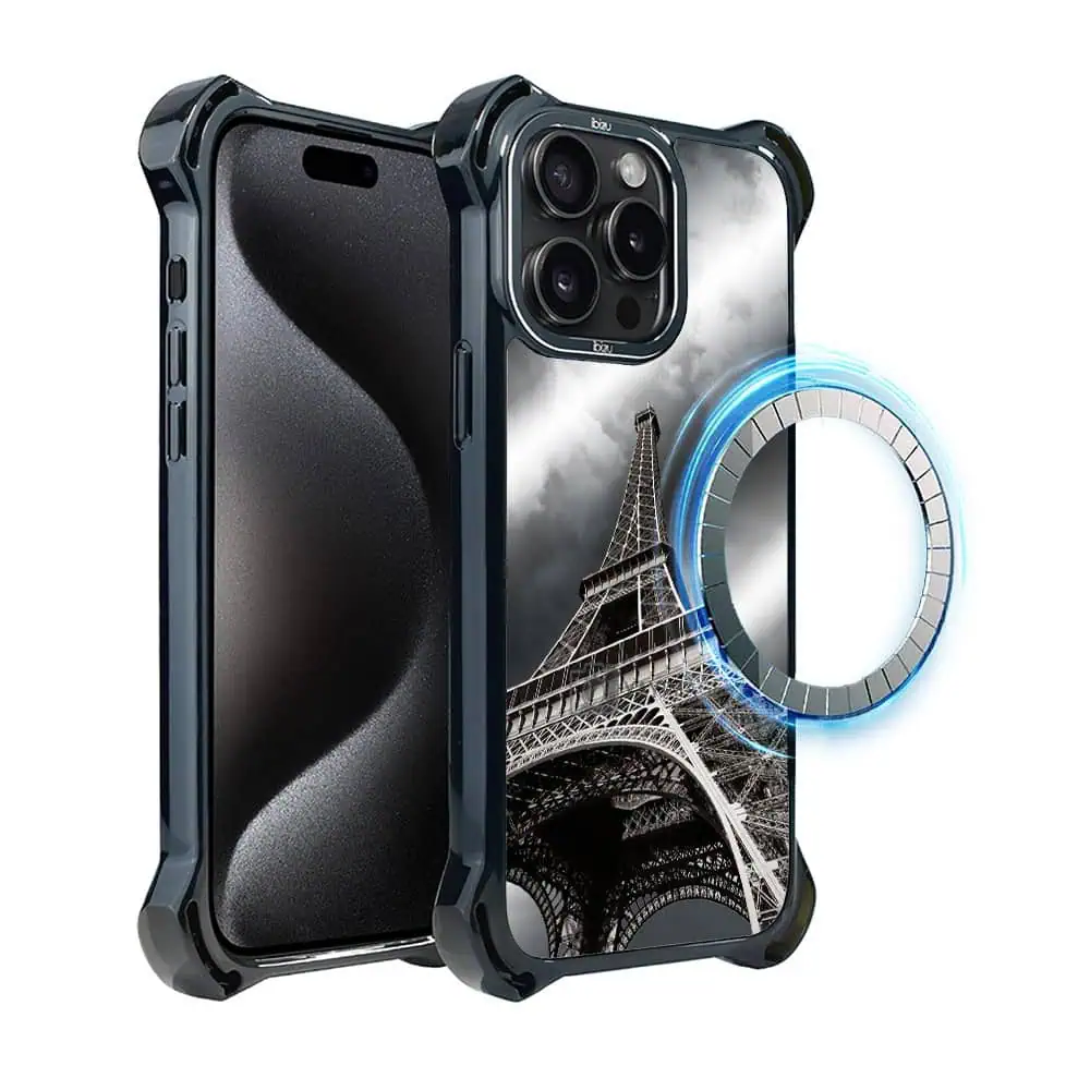 Etui do iPhone 15 Pro Max, Ibizu DropGuard Ultra z MagSafe, Noir City, Wieża Eiffla