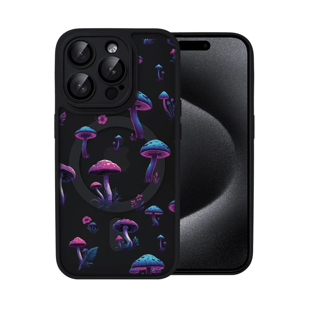 Etui do iPhone 15 Pro Max Color Flush z Magsafe, z osłoną aparatu, z nadrukiem magiczne grzybki, czarne