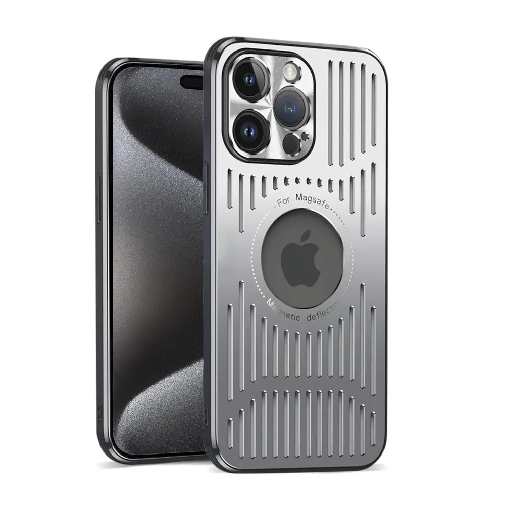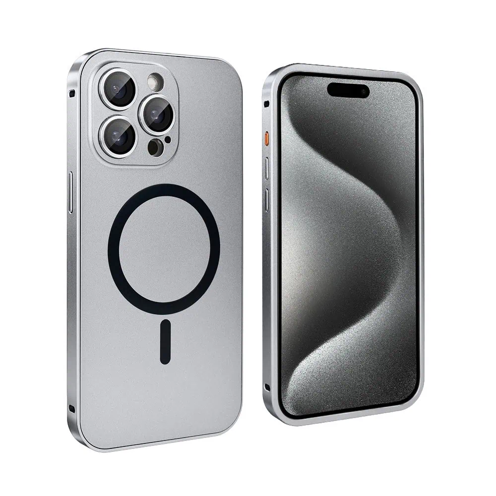 Etui do iPhone 15 Pro Max Metal Solid Magsafe, pełny tył z metalową ramką i osłoną aparatu, srebrne