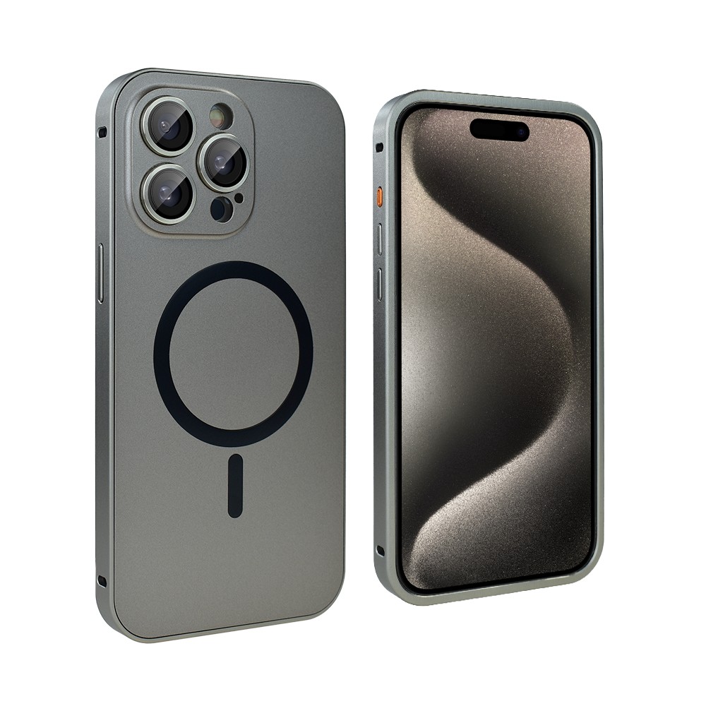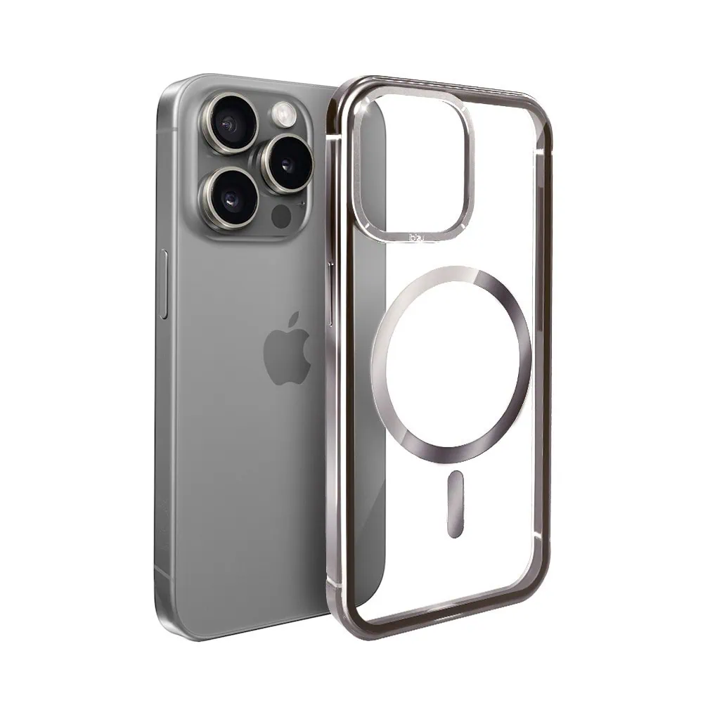 Etui do iPhone 15 Pro Max Metal Solid Magsafe, pełny tył z metalową ramką i osłoną aparatu, tytanowe