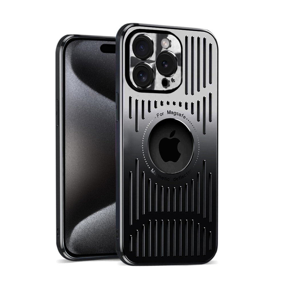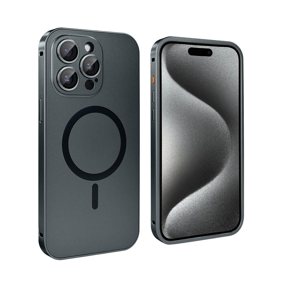 Etui do iPhone 15 Pro Max Metal Solid Magsafe, pełny tył z metalową ramką i osłoną aparatu, czarne