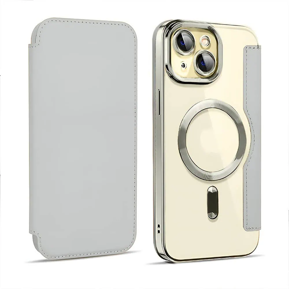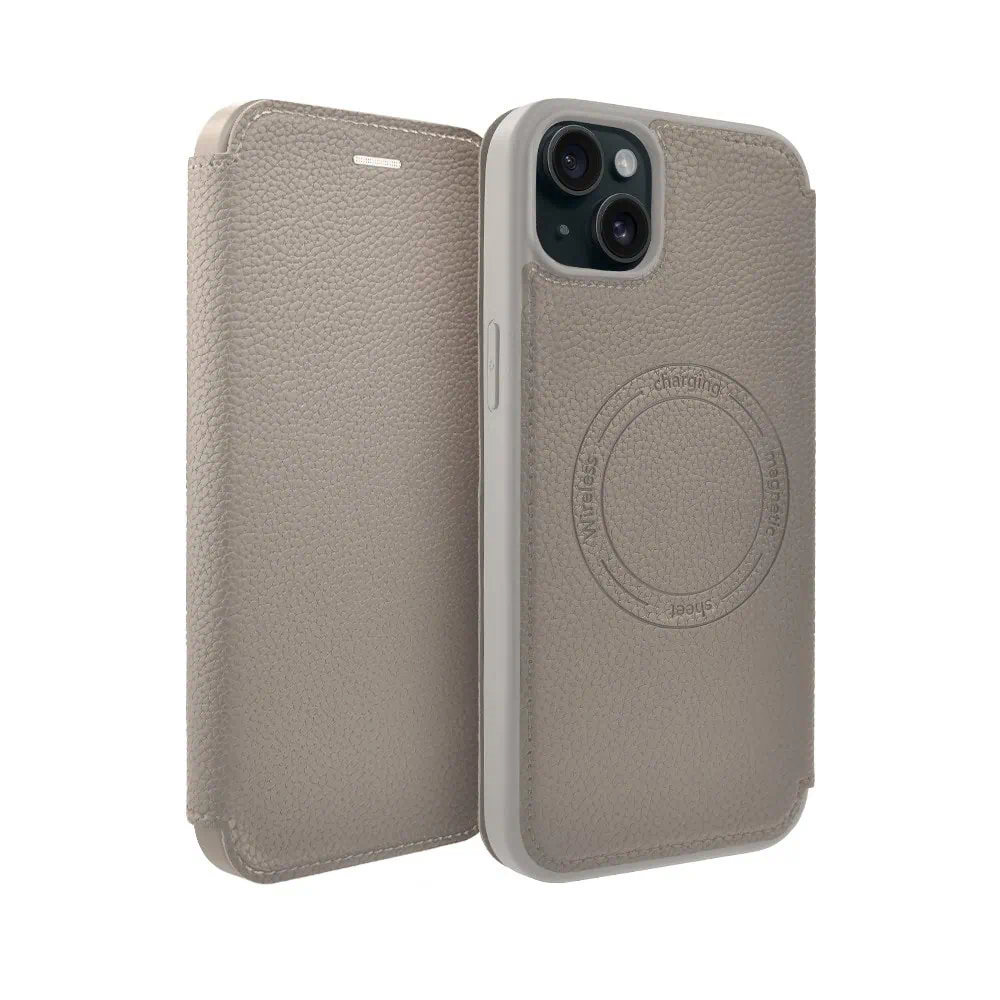 Etui do iPhone 15 typu książka Book Magsafe Lens Protect, z klapką, tytanowe