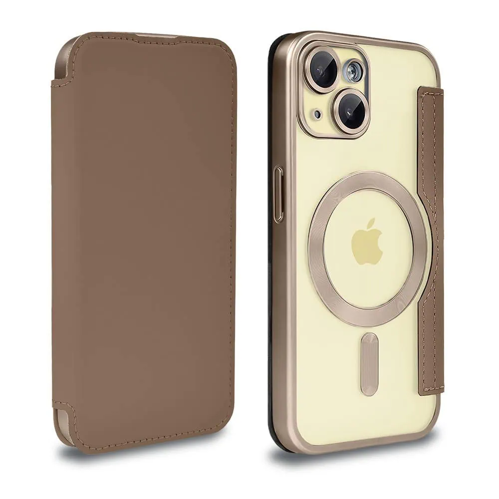 Etui do iPhone 15 typu książka Book Magsafe Lens Protect, z klapką, pustynny brąz