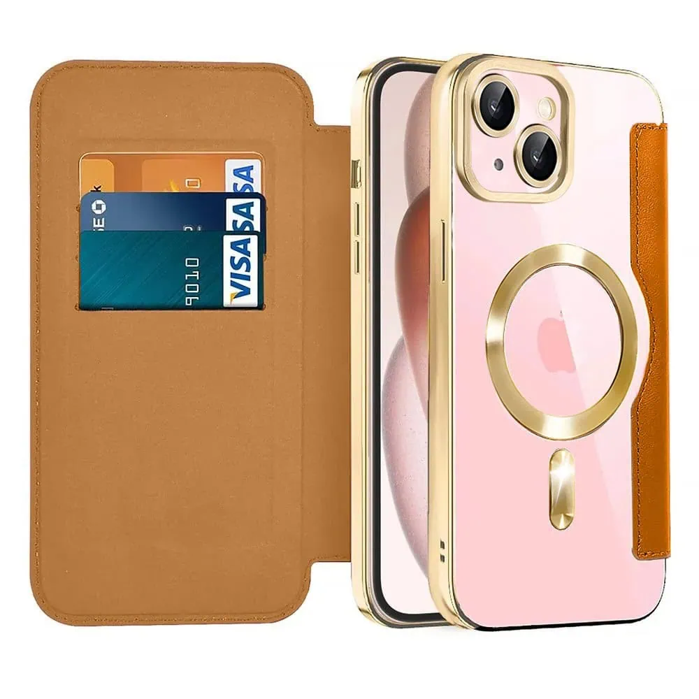 Etui do iPhone 15 klasyczne z magnetyczną klapką, złote