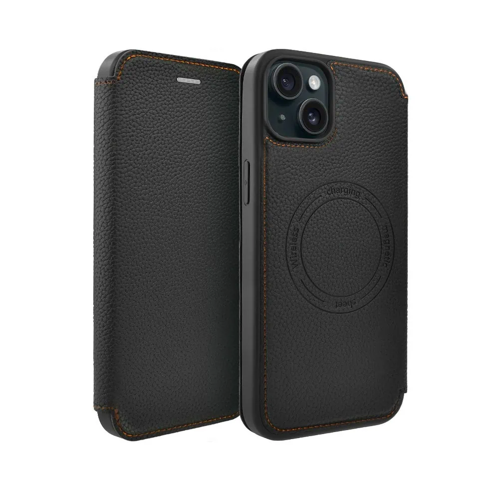 Etui do iPhone 15 klasyczne z magnetyczną klapką, czarne