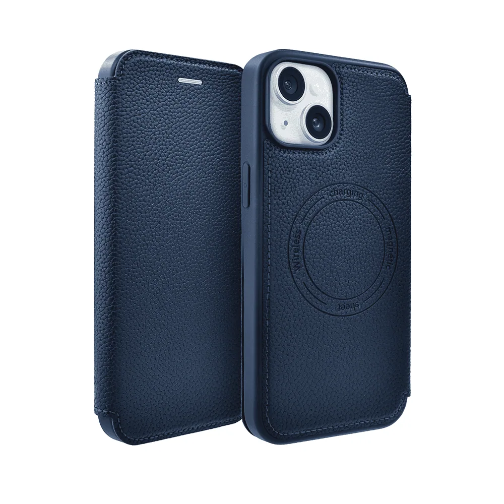 Etui do iPhone 15 z klapką Solid MagSafe Book, typu książka, granatowe