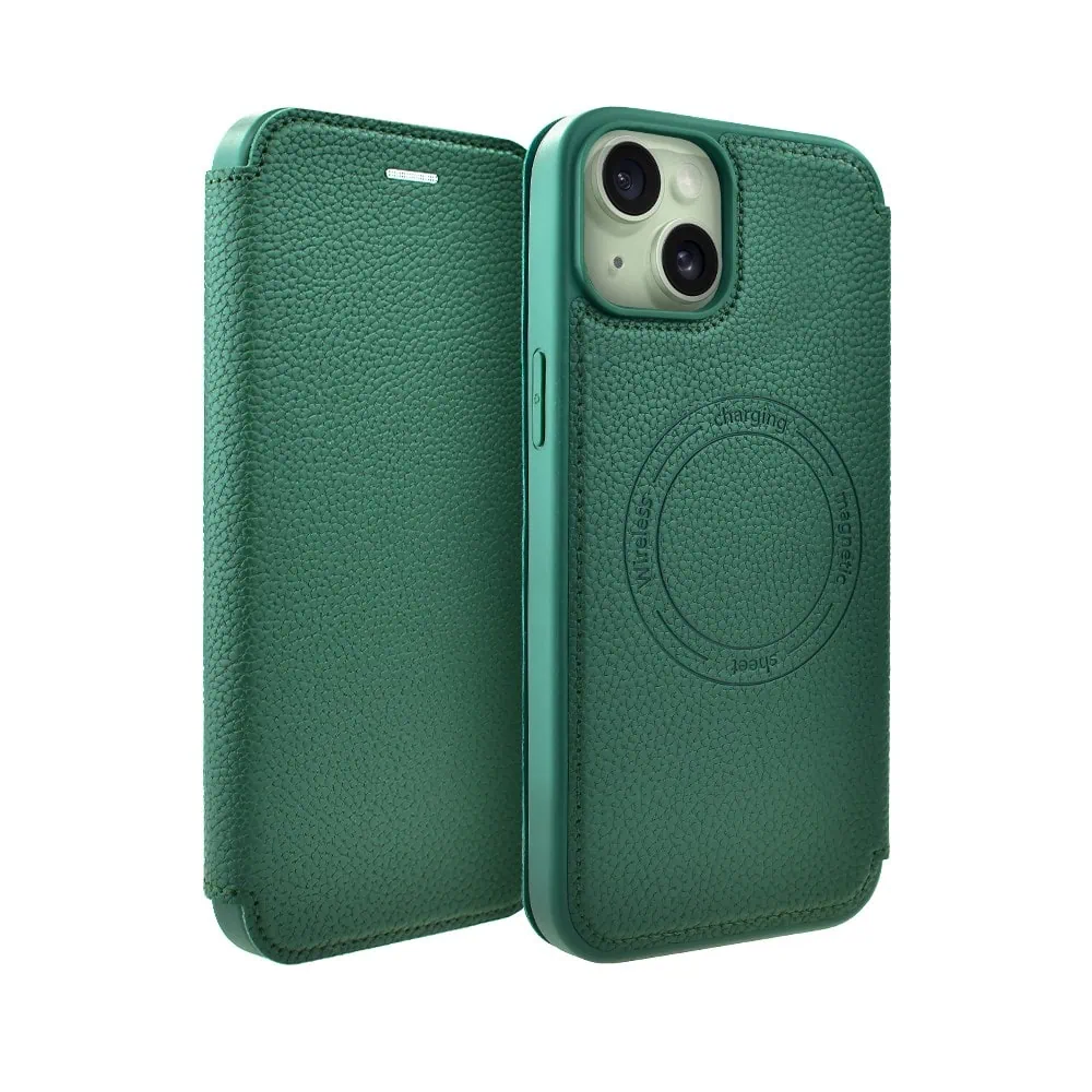 Etui do iPhone 15 z klapką Solid MagSafe Book, typu książka, zielone