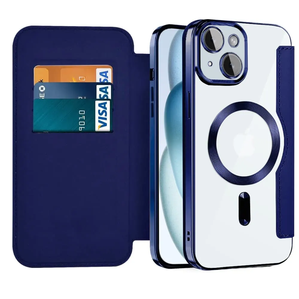 Etui do iPhone 15 typu książka Book Magsafe Lens Protect, z klapką, granatowe