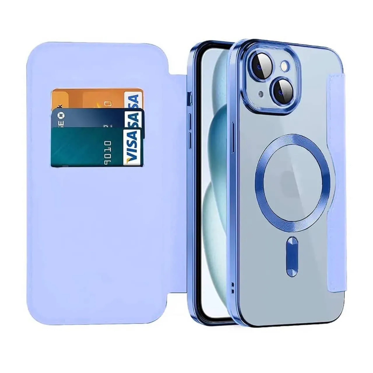 Etui do iPhone 15 typu książka Book Magsafe Lens Protect, z klapką, błękitne