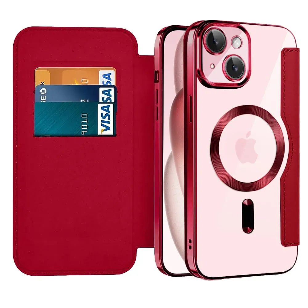 Etui do iPhone 15 typu książka Book Magsafe Lens Protect, z klapką, czerwone