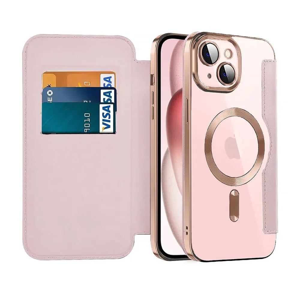Etui do iPhone 15 typu książka Book Magsafe Lens Protect, z klapką, różowe