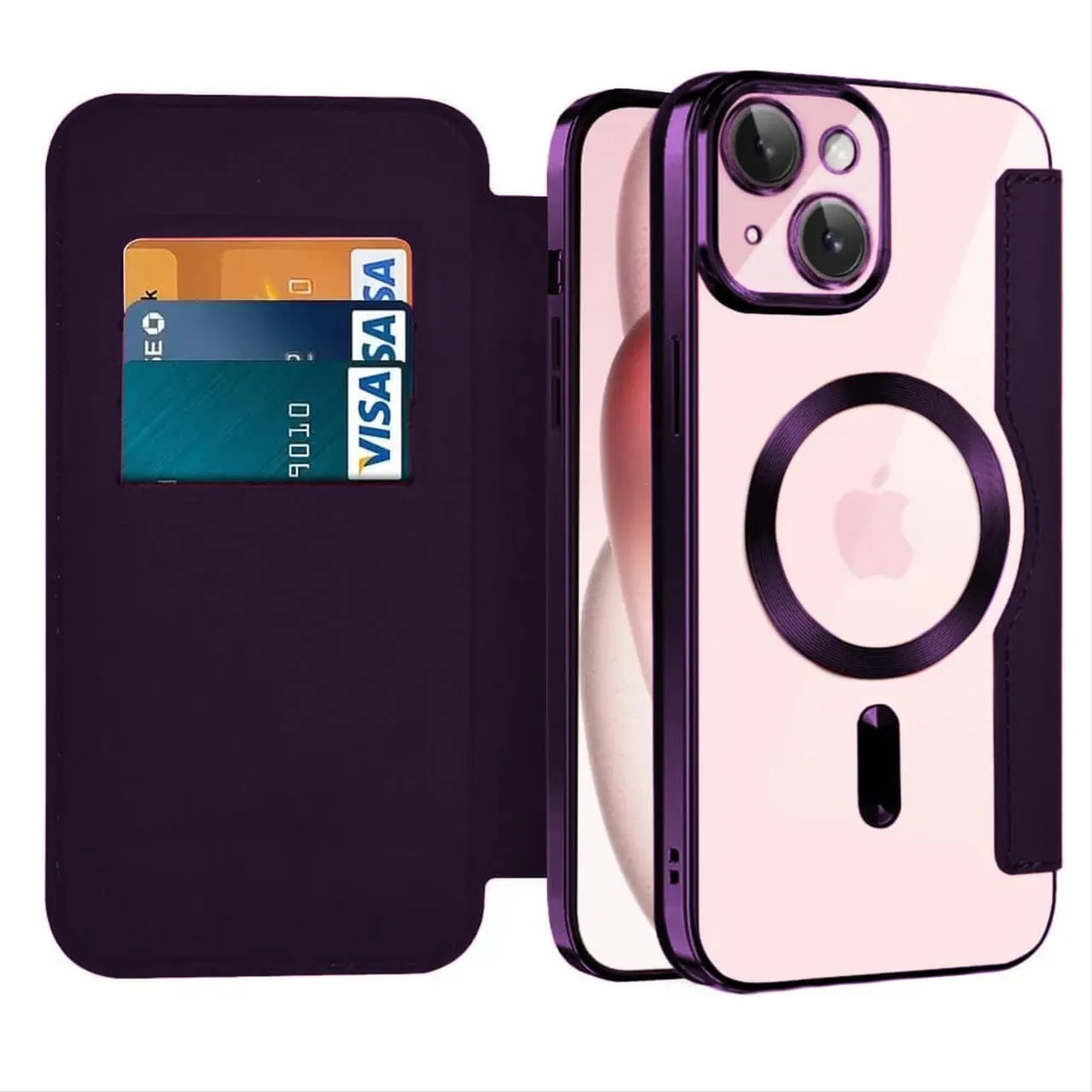 Etui do iPhone 15 typu książka Book Magsafe Lens Protect, z klapką, głęboka purpura