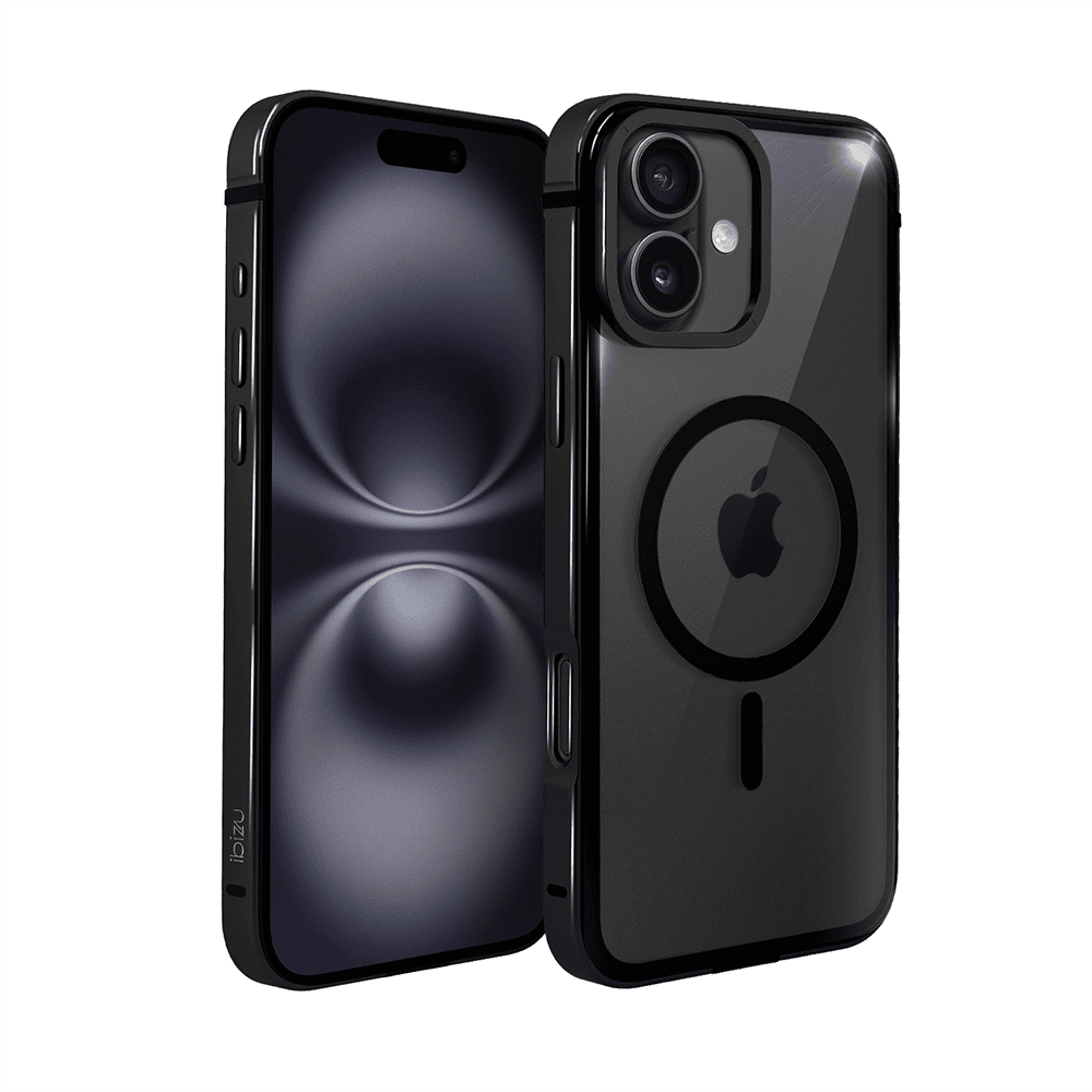 Etui do iPhone 16 Ibizu Elite Skin z MagSafe, krystalicznie czyste z metalową ramką, czarne