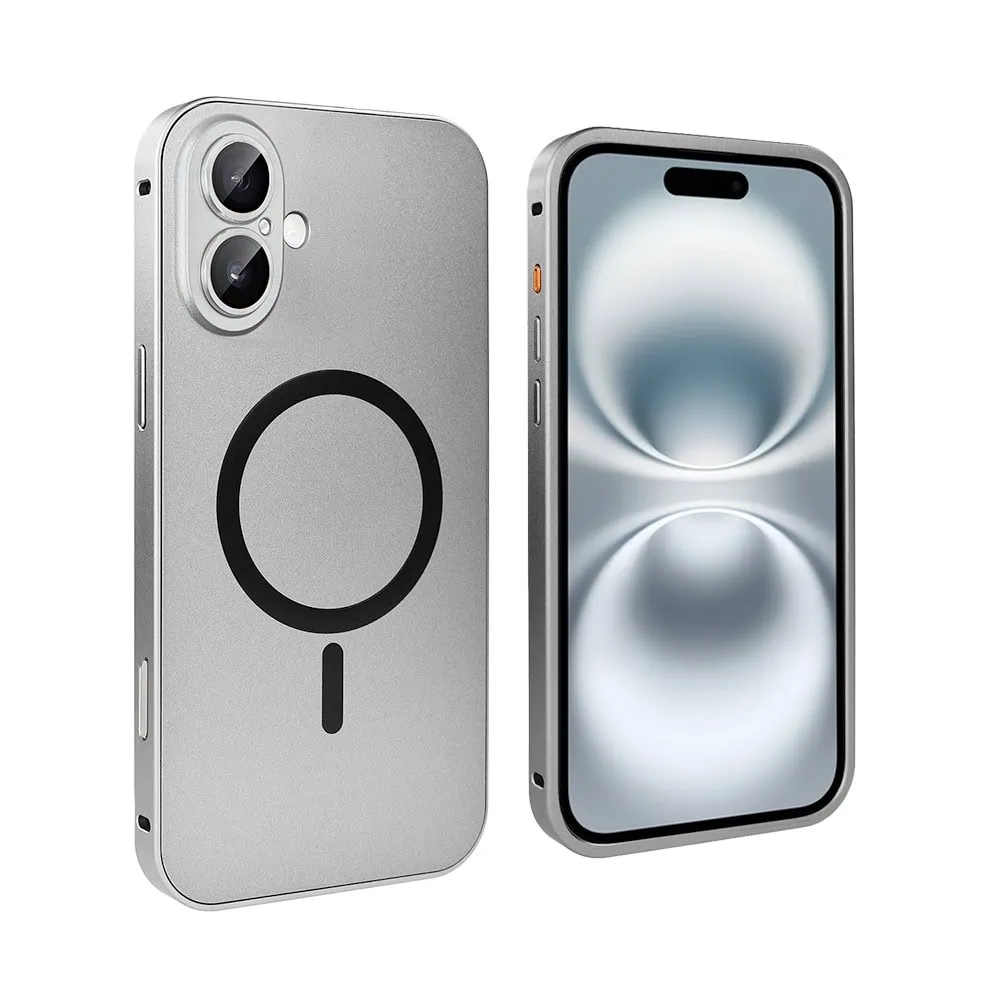 Etui do iPhone 16 Metal Solid Magsafe, pełny tył z metalową ramką i osłoną aparatu, srebrne