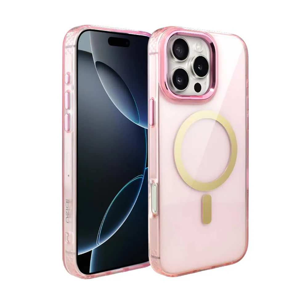 Etui do iPhone 16 Pro Golden Elite, cienkie, ze złotym MagSafe, różowe