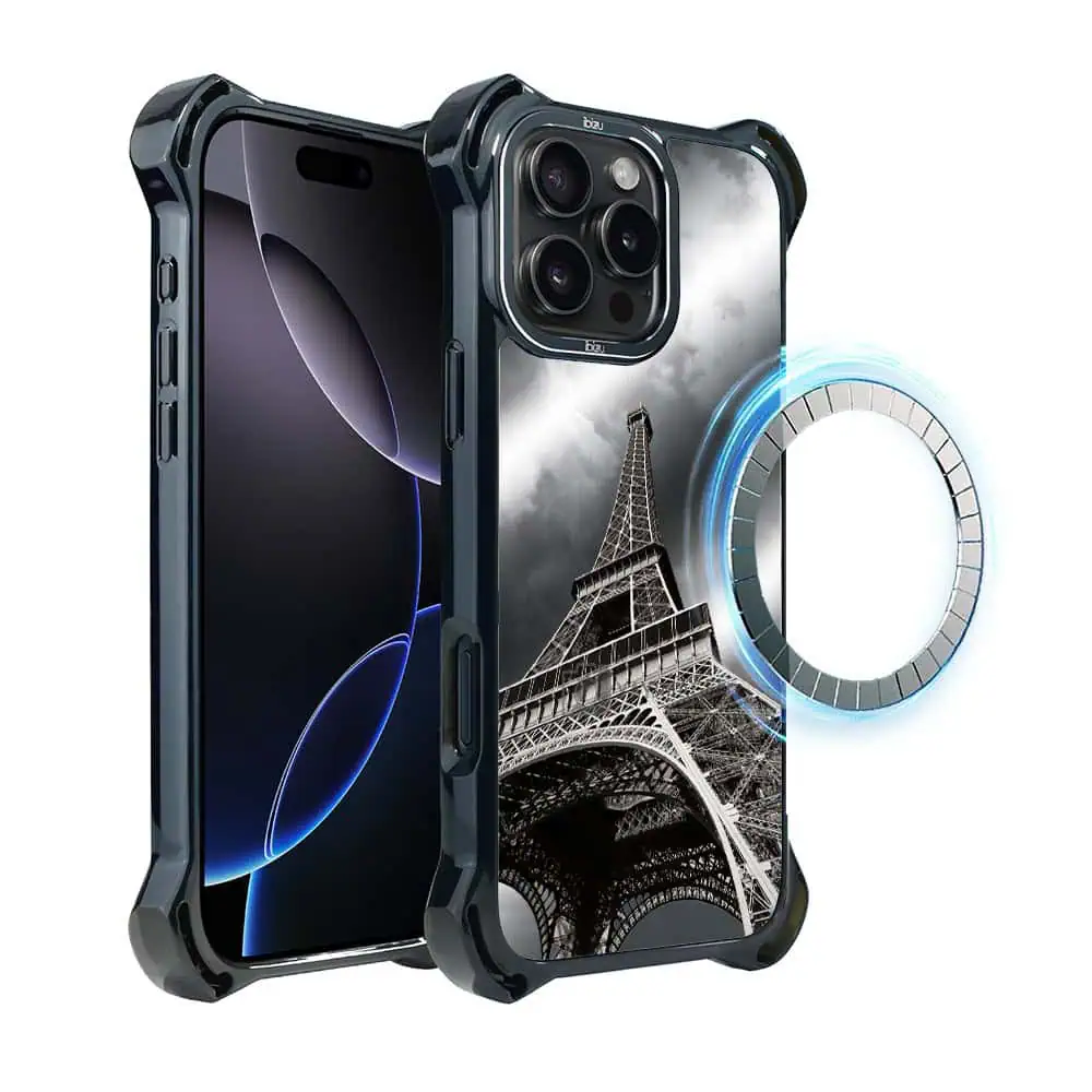 Etui do iPhone 16 Pro, Ibizu DropGuard Ultra z MagSafe, Noir City, Wieża Eiffla