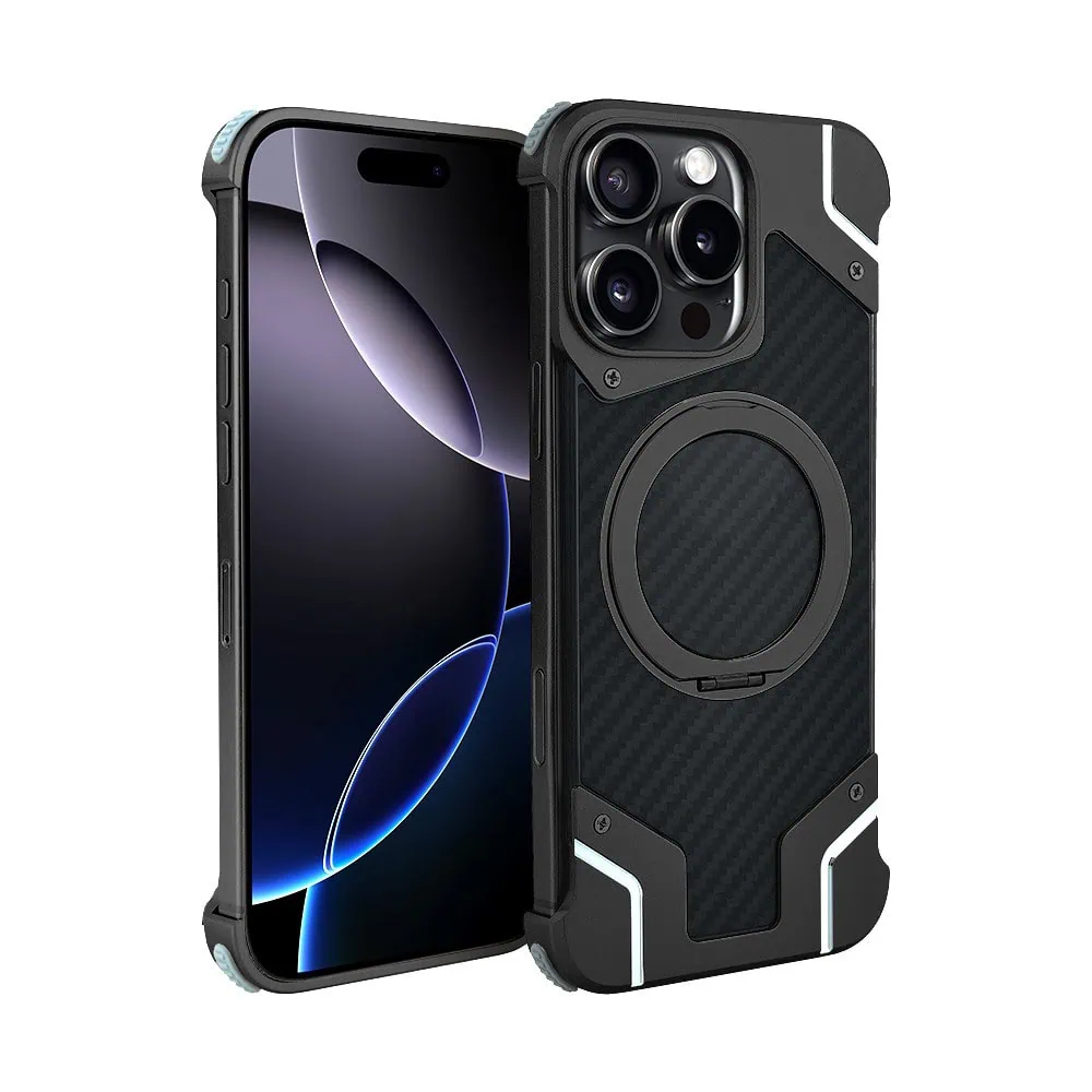 Etui do iPhone 16 Pro MagSafe Carbon Spinal Shield, anti shock, metalowe z podstawką, czarne