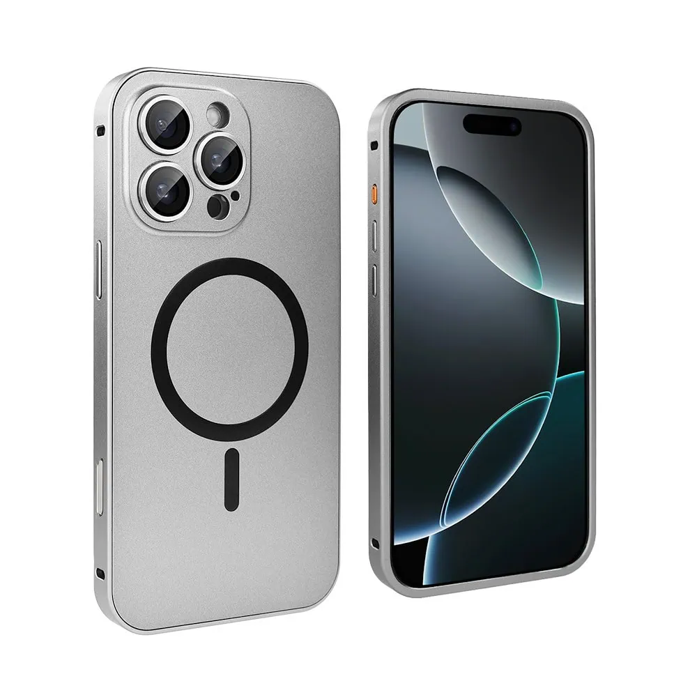 Etui do iPhone 16 Pro Metal Solid Magsafe, pełny tył z metalową ramką i osłoną aparatu, srebrne