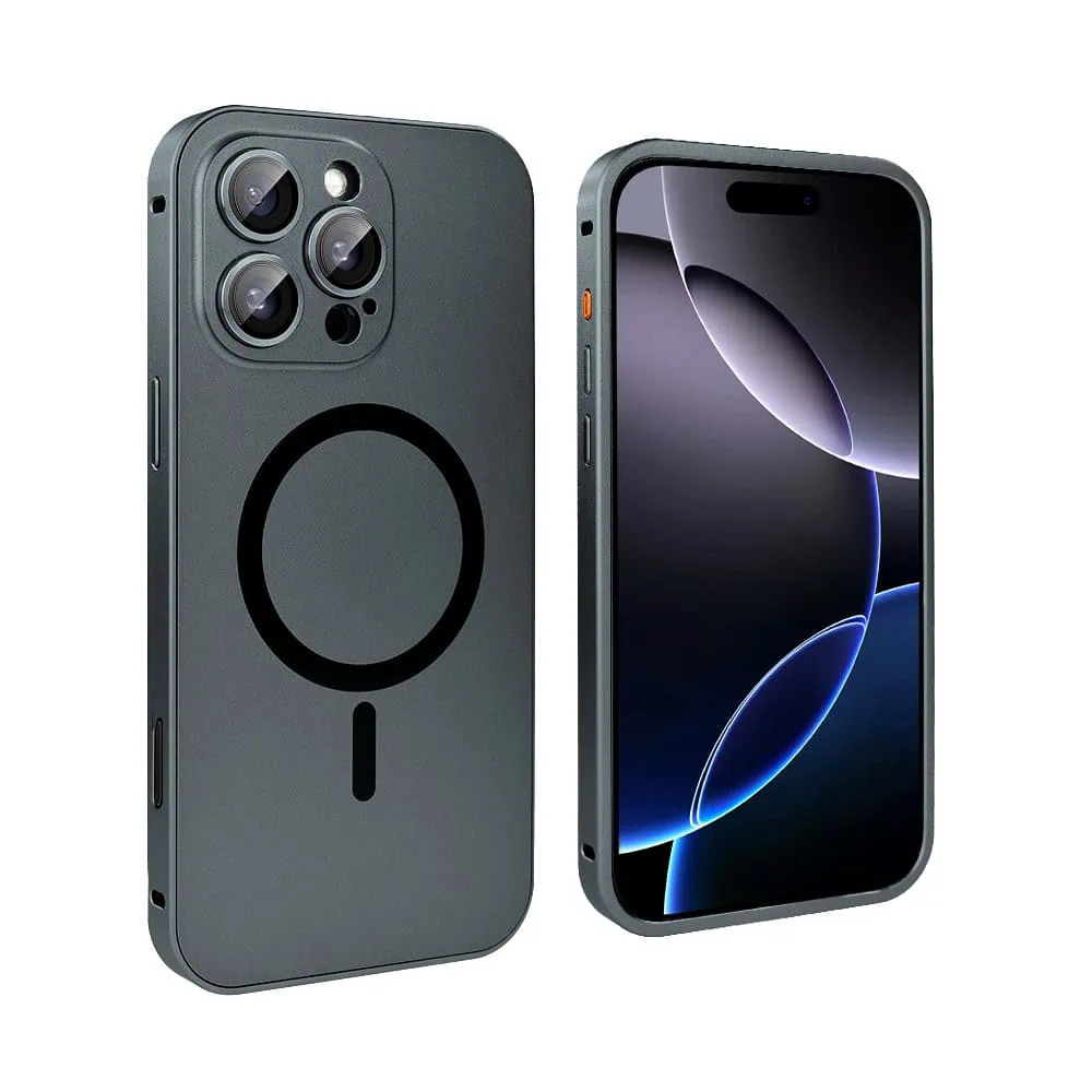 Etui do iPhone 16 Pro Metal Solid Magsafe, pełny tył z metalową ramką i osłoną aparatu, czarne