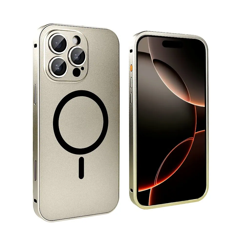 Etui do iPhone 16 Pro Metal Solid Magsafe, pełny tył z metalową ramką i osłoną aparatu, pustynny tytan