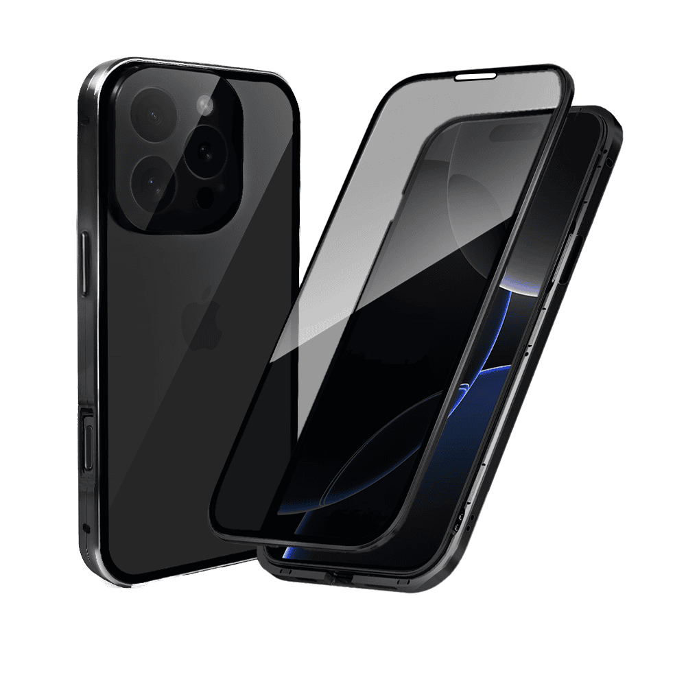 Obudowa do iPhone 16 Pro, podwójna szyba i aluminium 360° przód + tył magnetyczna, z osłoną aparatu i szkłem prywatyzującym, czarna