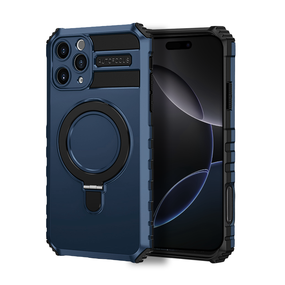 Etui do iPhone 16 Pro, pancerne, z osłoną aparatu i metalową podstawką MagSafe, granatowe