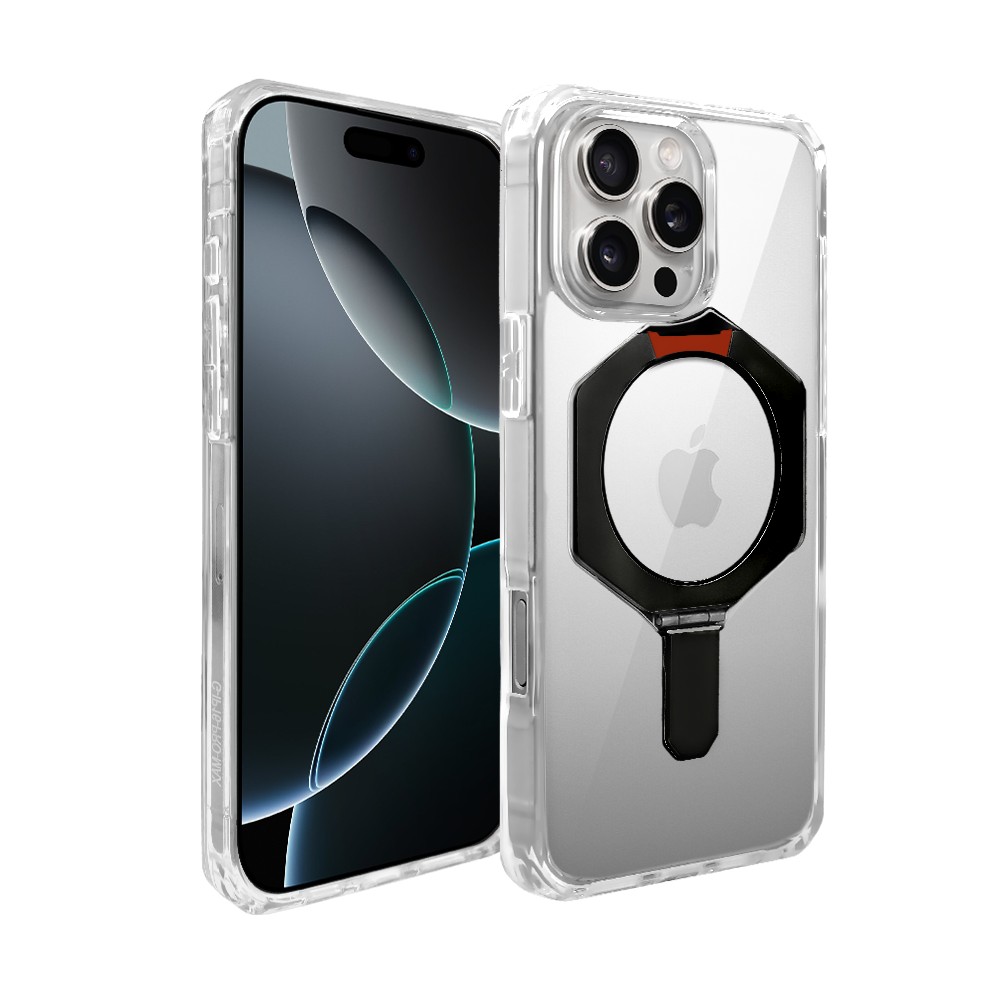Etui do iPhone 16 Pro Arctic Stand, półprzeźroczyste, z osłoną aparatu i podstawką, czarne