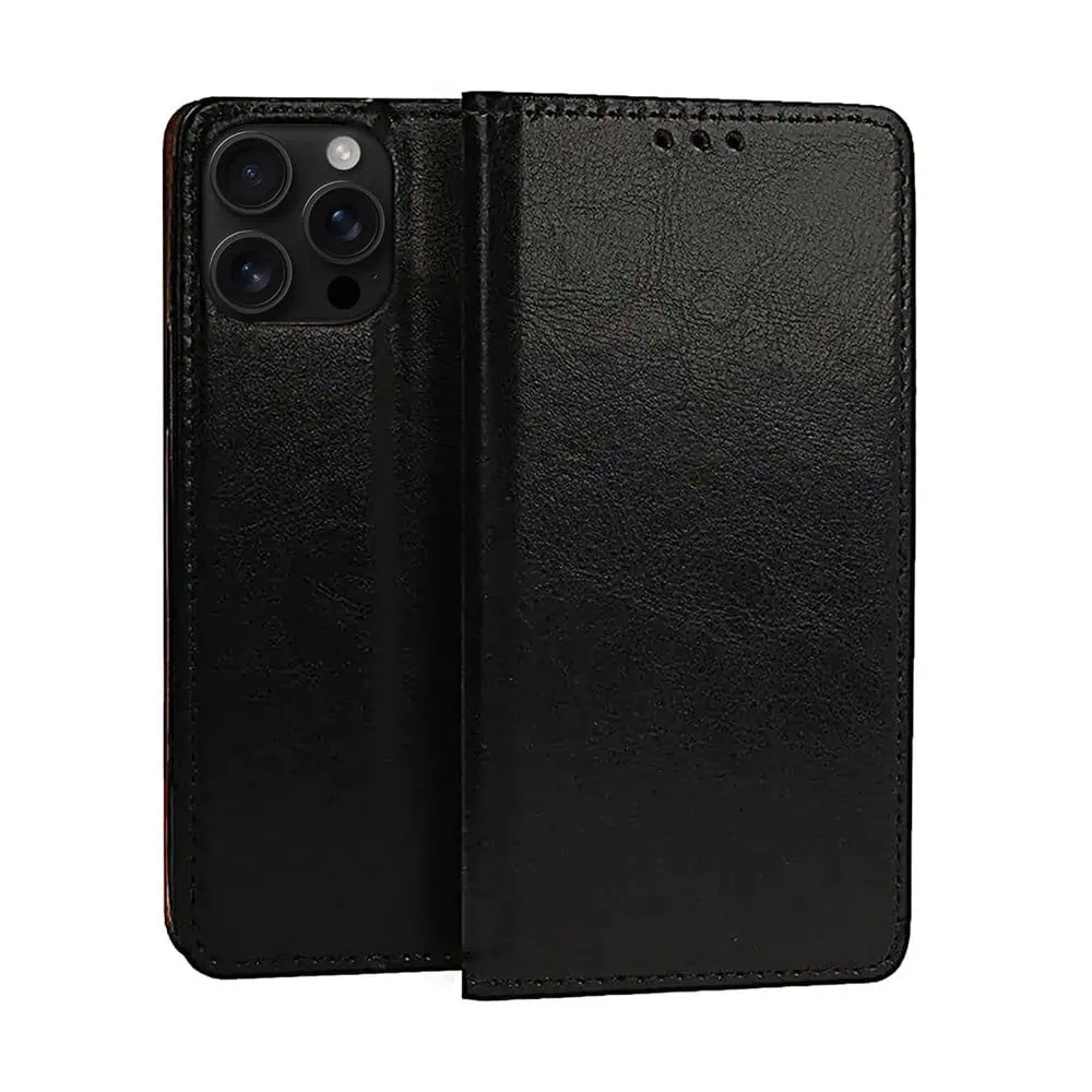 Etui do iPhone 16 Pro zamykane, eleganckie skórzane, czarne