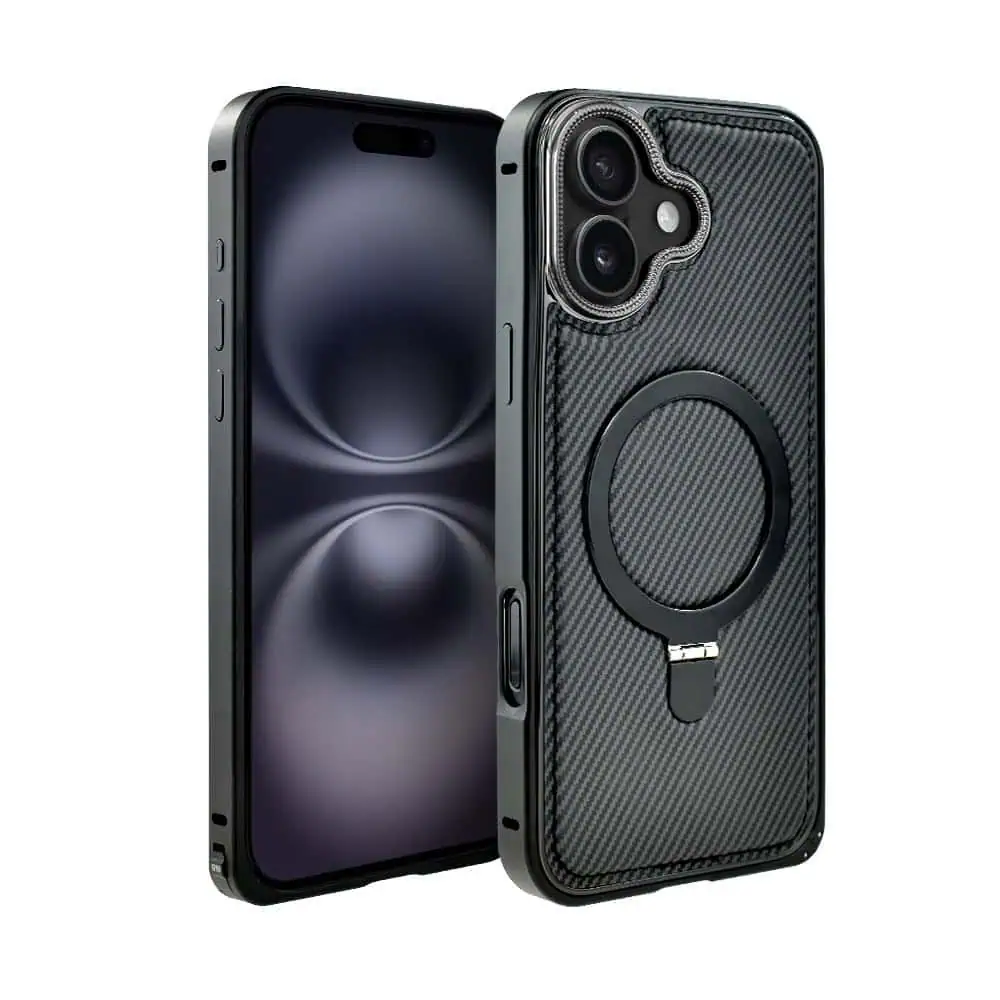 Etui do iPhone 16 Metal Solid Leather Stand z MagSafe, czarne