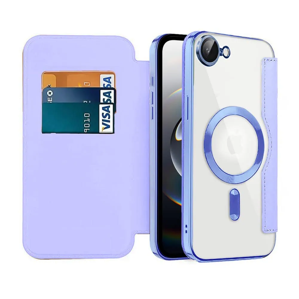 Etui do iPhone 16e typu książka Book MagSafe Lens Protect, z klapką, błękitne