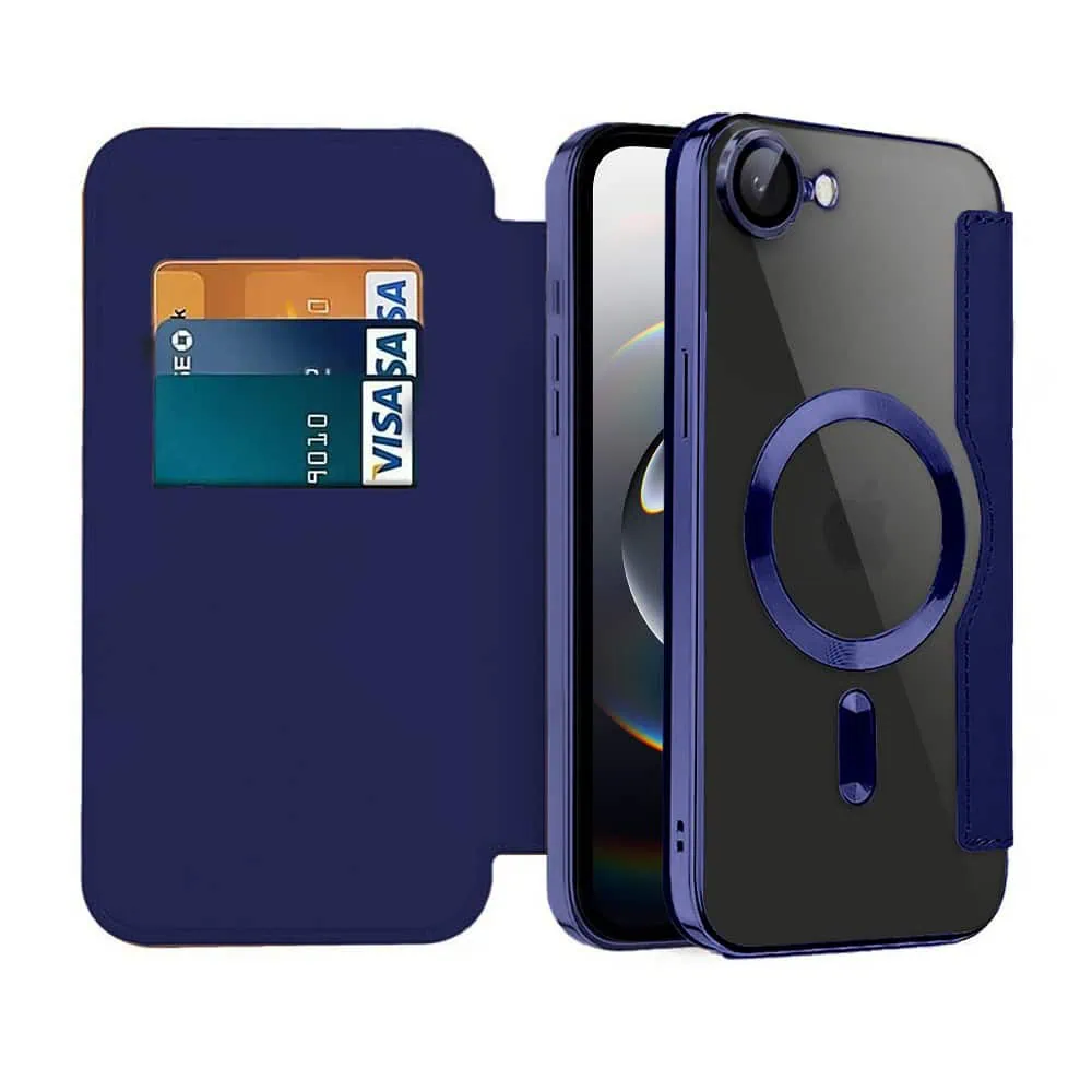 Etui do iPhone 16e typu książka Book MagSafe Lens Protect, z klapką, granatowe