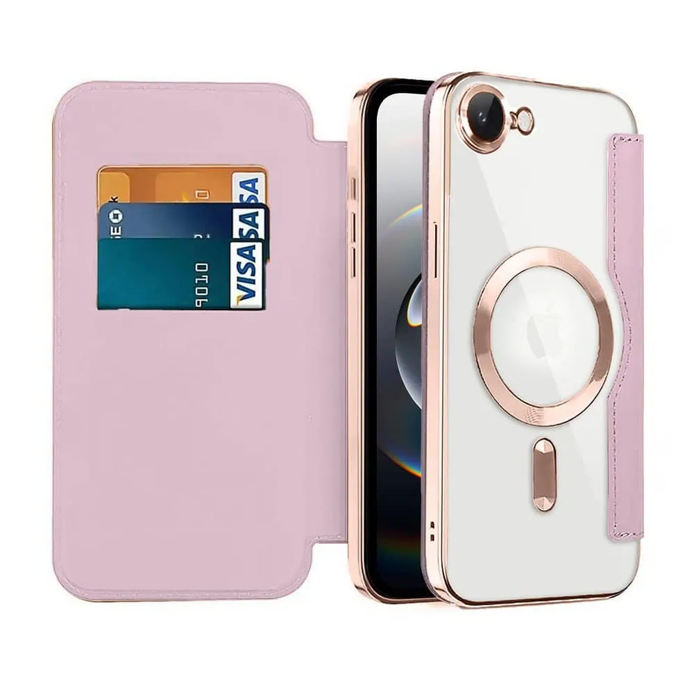 Etui do iPhone 16e typu książka Book MagSafe Lens Protect, z klapką, różowe